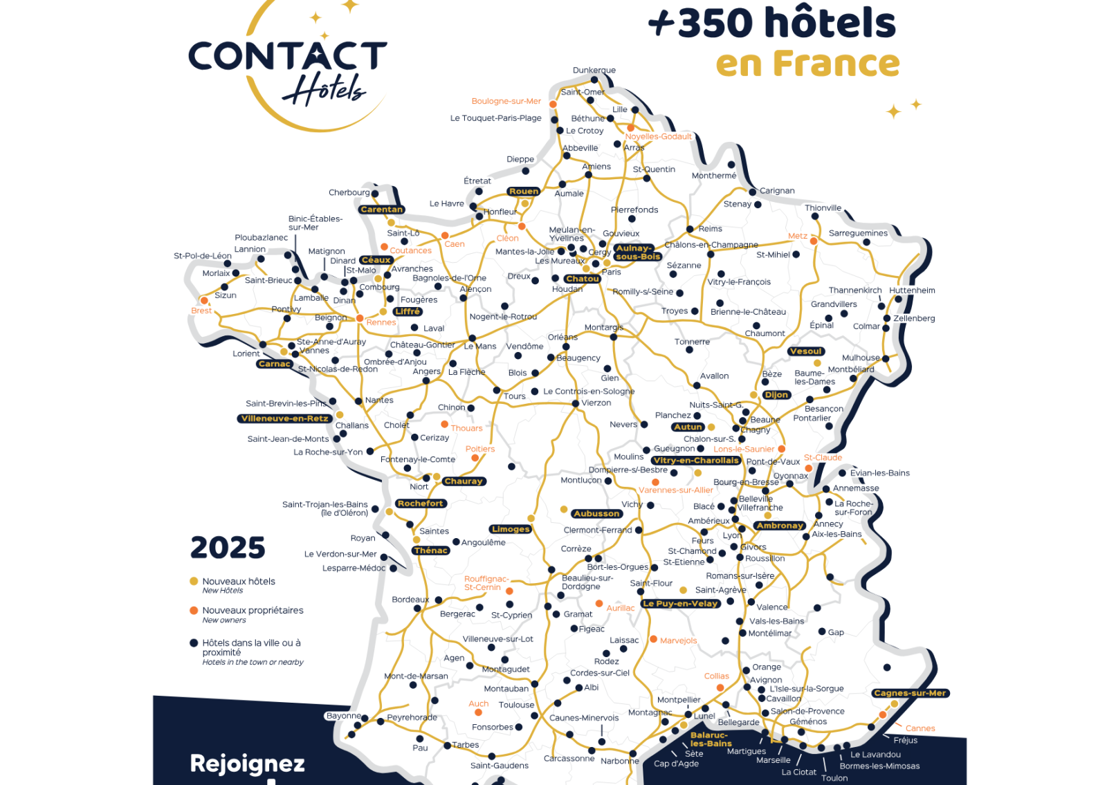 Contact Hôtels, fondé en 1990, est un groupement d’hôteliers indépendants réunissant plus de 300 établissements à travers la France. Ces hôtels 2, 3 et 4 étoiles offrent une expérience personnalisée tout en préservant l’authenticité locale.